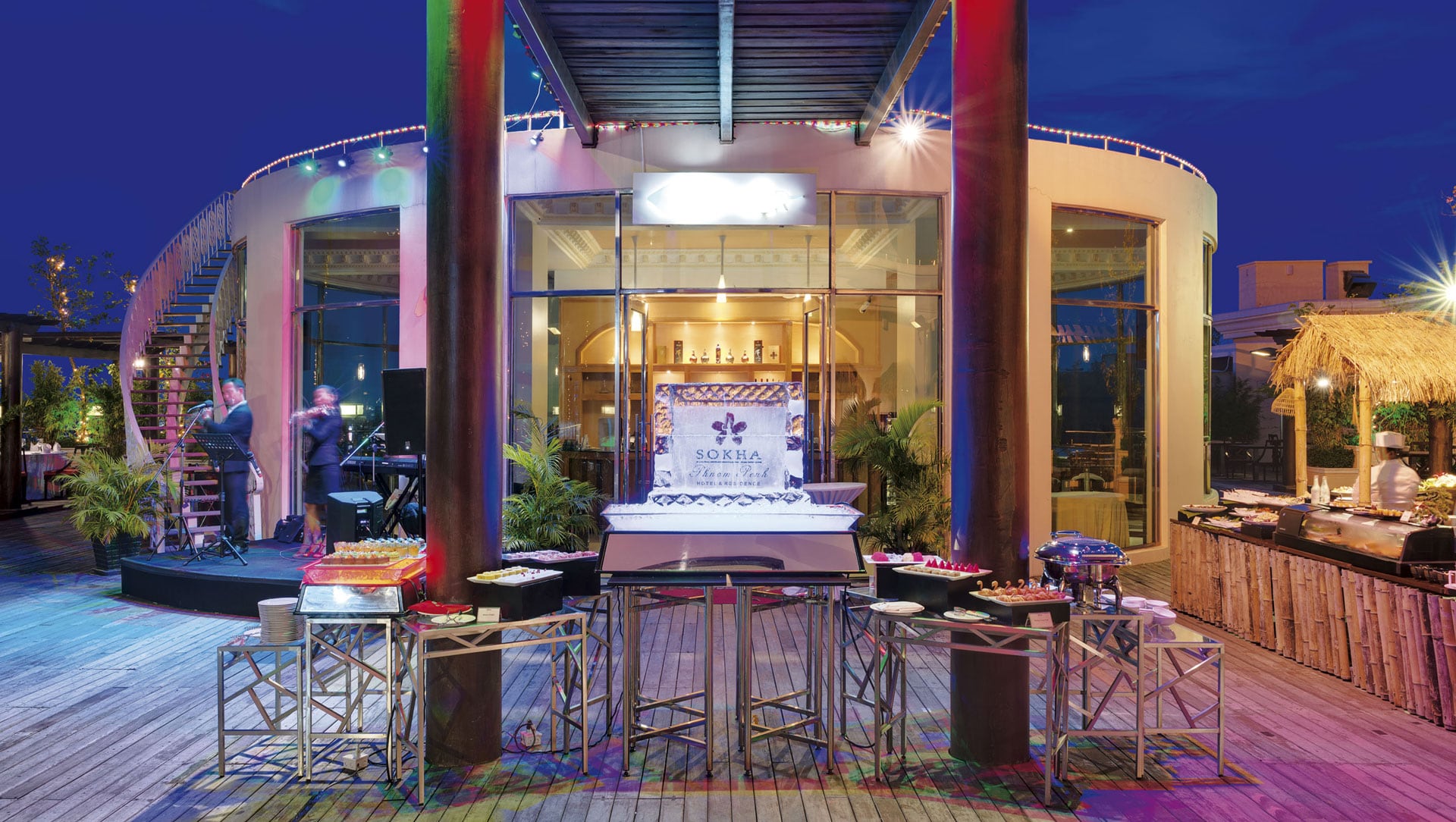 Take the lift to the 20th floor and watch in awe as the world goes by. Let the romantic mood and gentle jazz wash over you, while enjoying sensational views of the Cambodian capital.