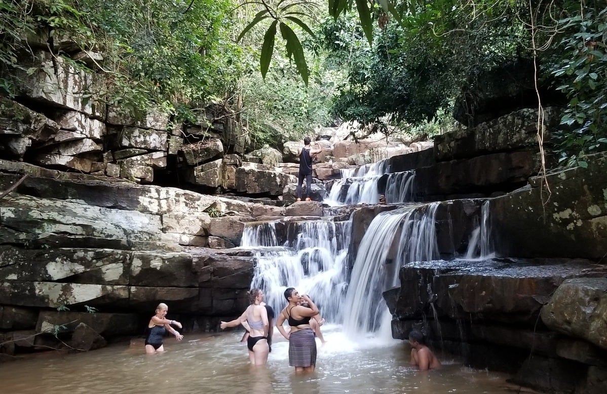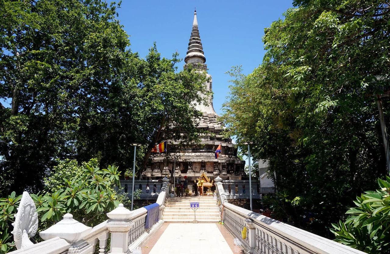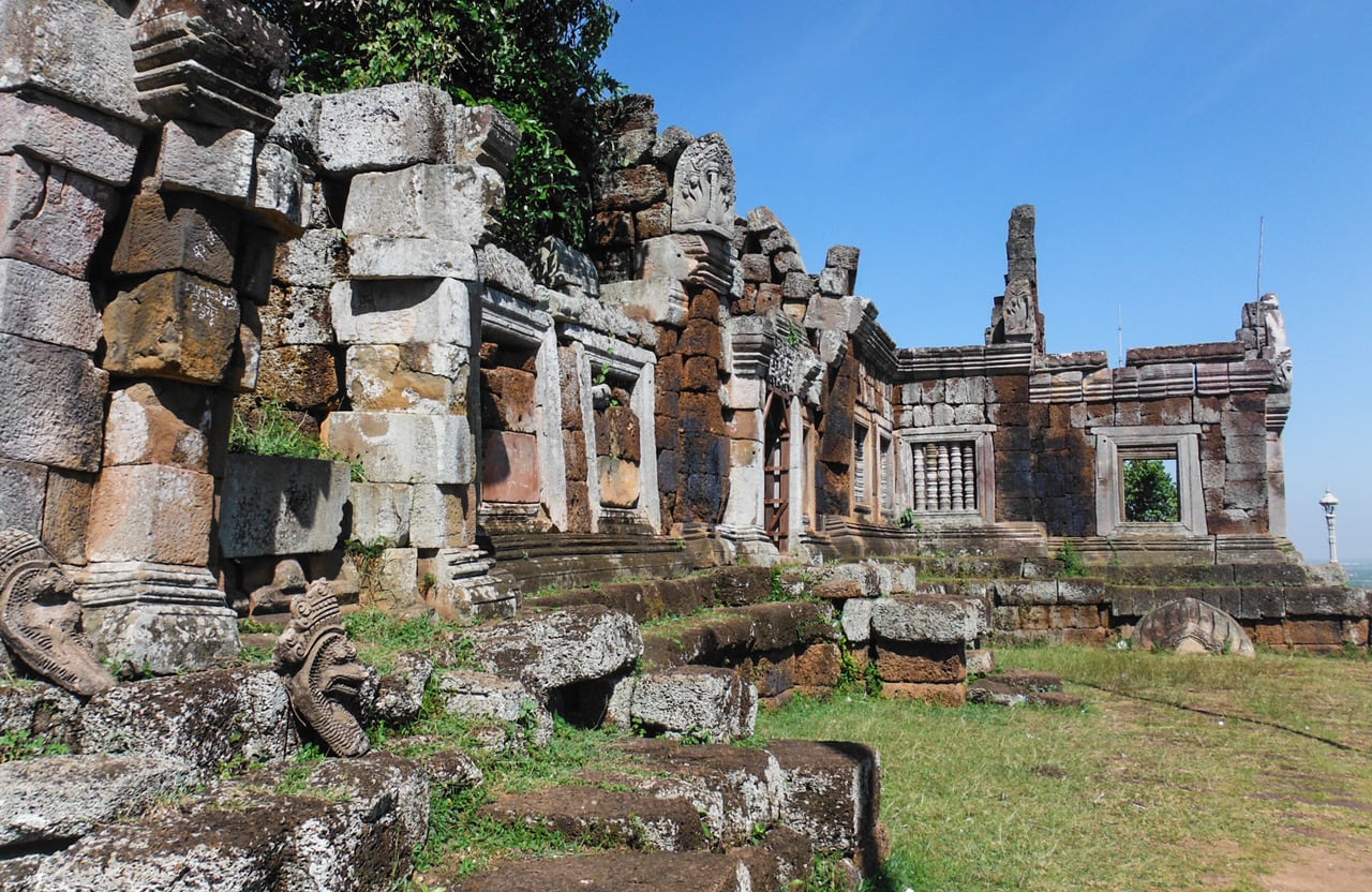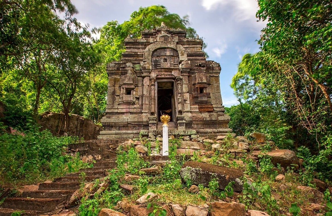 Phnom Chiso is a historical site located in Sia village, Rovieng commune, Samrong district, about 62 kilometers south of Phnom Penh or 27 kilometers north of Takeo provincial town. Phnom Chiso temple was built in the early 11th century by King Suryavarman I (AD 1002-1050), who practiced Brahmanism. Constructed of sandstone and other stones, it is 60 meters long and 50 meters wide and sits atop a mountain. The top of the mountain affords visitors a panoramic view of Takeo Province rice paddies stretching for kilometers.