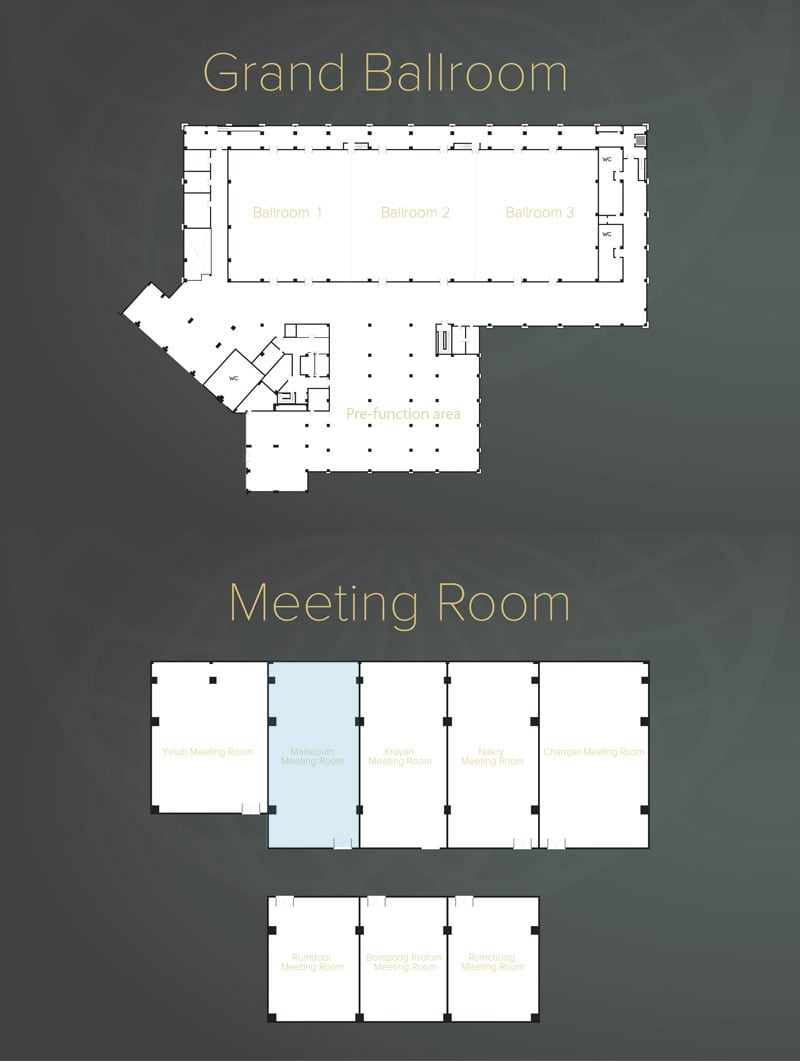 Well-equipped with latest audio-visual amenities, Malisrouth Meeting Room is the perfect venue for board meetings, corporate meetings, workshops, seminars or intimate banquets. The venue provides hardwood flooring, fast speed Internet access and can cover up to 145 persons.
